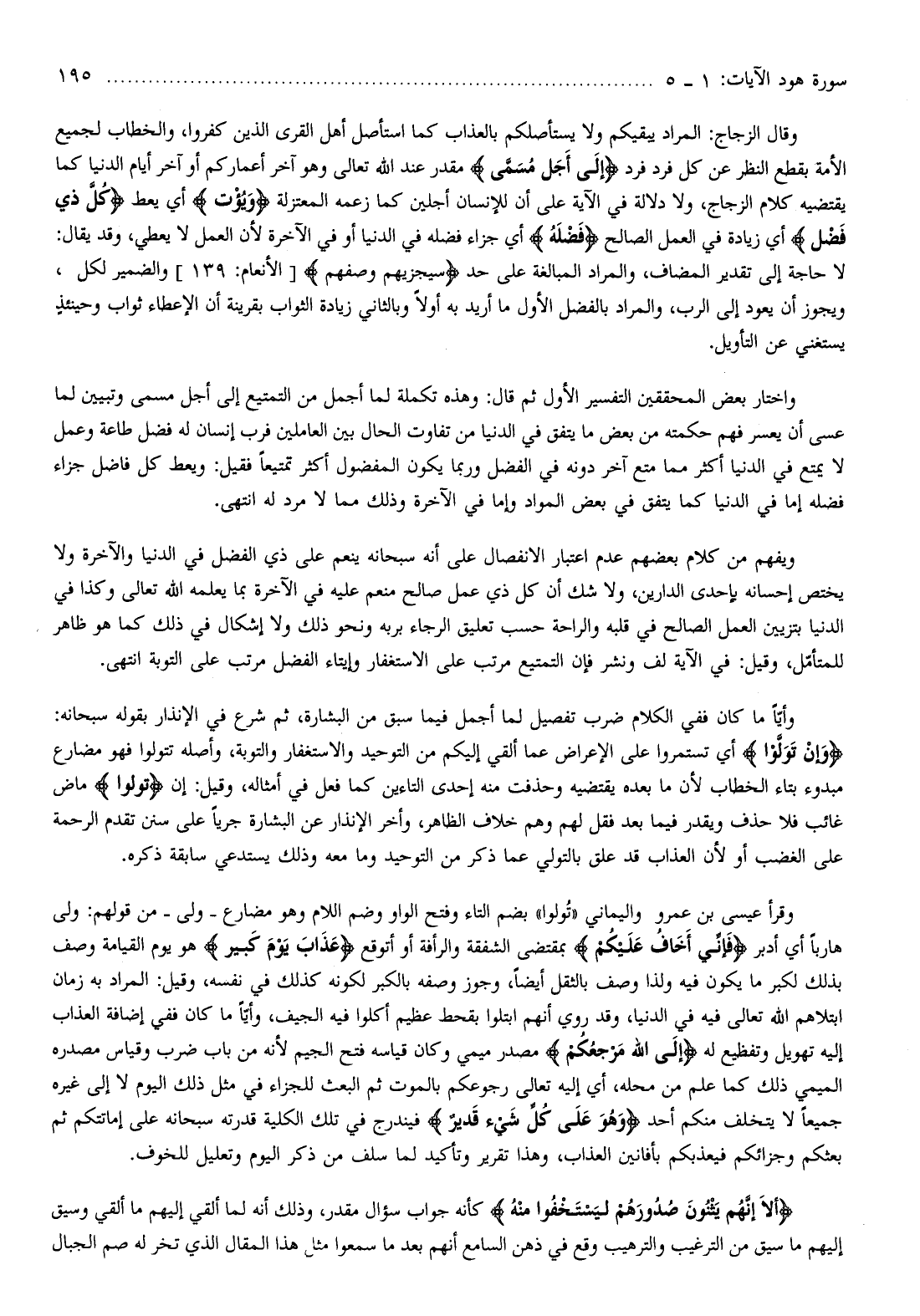 وقال الزجاج: المراد يبقيكم ولا يستأصلكم بالعذاب كما استأصل أهل القرى الذين كفروا، والخطاب لجميع الأمة بقطع النظر عن كل فرد فرد إِلى أَجَلٍ مُسَمًّى مقدر عند الله تعالى وهو آخر أعماركم أو آخر أيام الدنيا كما يقتضيه كلام الزجاج، ولا دلالة في الآية على أن للإنسان أجلين كما زعمه المعتزلة وَيُؤْتِ أي يعط كُلَّ ذِي فَضْلٍ أي زيادة في العمل الصالح فَضْلَهُ أي جزاء فضله في الدنيا أو في الآخرة لأن العمل لا يعطي، وقد يقال: