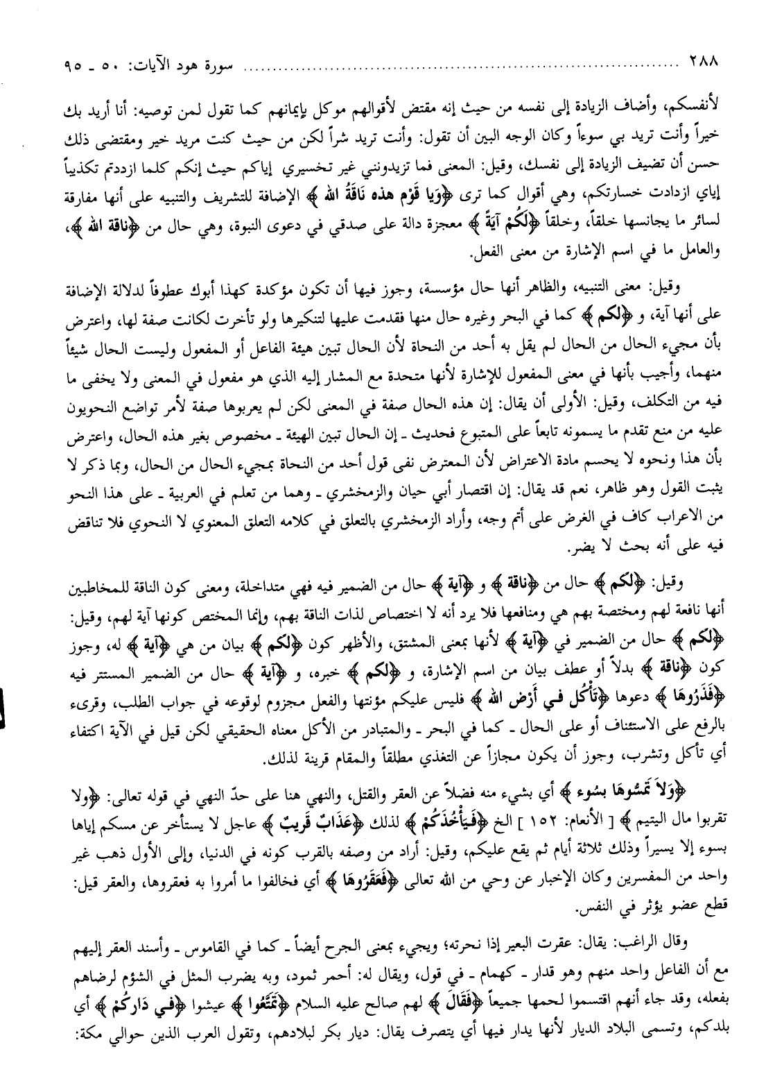 لأنفسكم، وأضاف الزيادة إلى نفسه من حيث إنه مقتض لأقوالهم موكل بإيمانهم كما تقول لمن توصيه: أنا أريد بك خيرا وأنت تريد بي سوءا وكان الوجه البين أن تقول: وأنت تريد شرا لكن من حيث كنت مريد خير ومقتضى ذلك حسن أن تضيف الزيادة إلى نفسك، وقيل: المعنى فما تزيدونني غير تخسيري إياكم حيث إنكم كلما ازددتم تكذيبا إياي ازدادت خسارتكم، وهي أقوال كما ترى وَيا قَوْمِ هذِهِ ناقَةُ اللَّهِ الإضافة للتشريف والتنبيه على أنها مفارقة لسائر ما يجانسها خلقا، وخلقا لَكُمْ آيَةً معجزة دالة على صدقي في دعوى النبوة، وهي حال من ناقَةُ اللَّهِ، والعامل ما في اسم الإشارة من معنى الفعل.