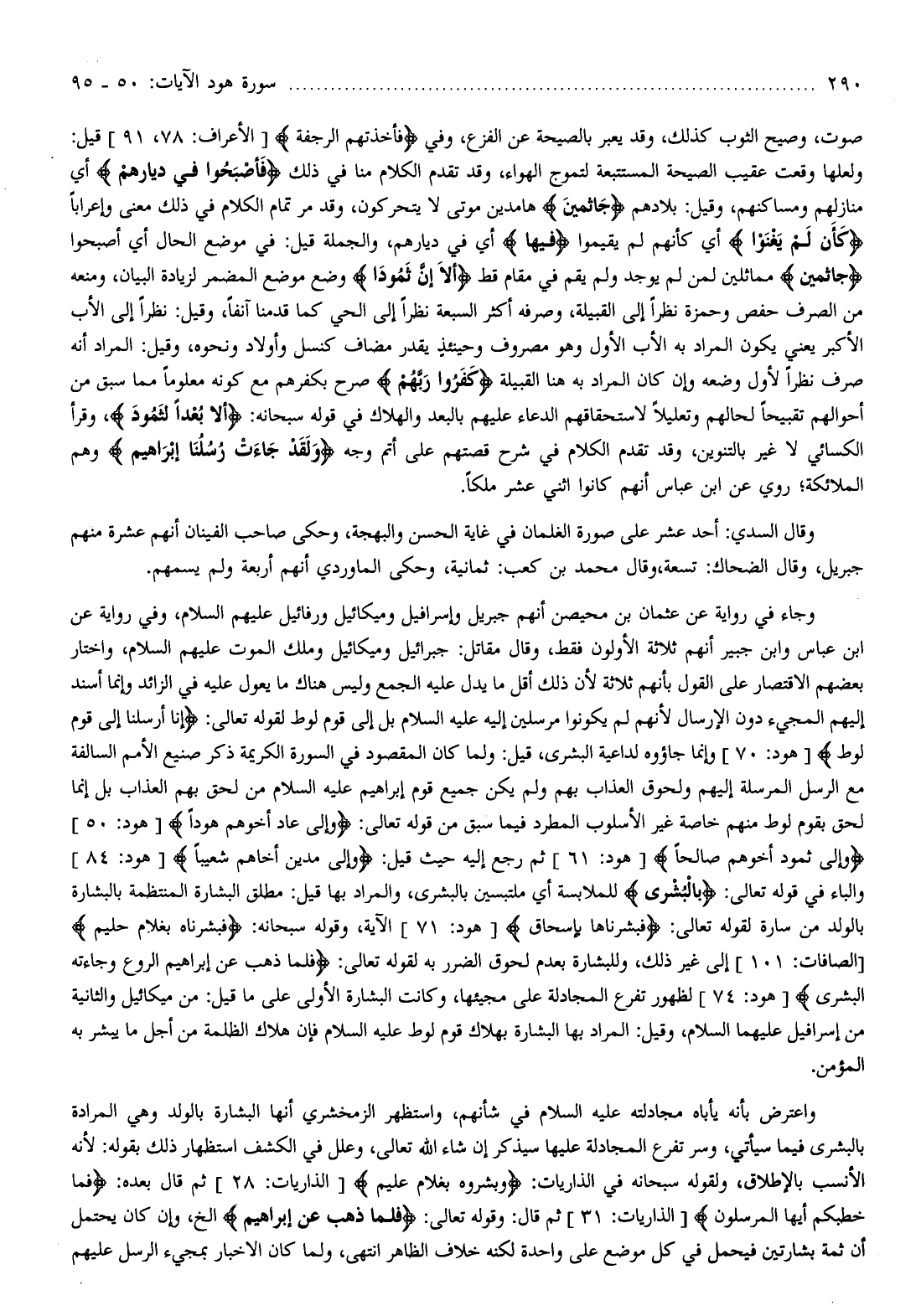 وجاء في رواية عن عثمان بن محيصن أنهم جبريل وإسرافيل وميكائيل ورفائيل عليهم السلام، وفي رواية عن ابن عباس وابن جبير أنهم ثلاثة الأولون فقط، وقال مقاتل: جبرائيل وميكائيل وملك الموت عليهم السلام، واختار بعضهم الاقتصار على القول بأنهم ثلاثة لأن ذلك أقل ما يدل عليه الجمع وليس هناك ما يعول عليه في الزائد وإنما أسند إليهم المجيء دون الإرسال لأنهم لم يكونوا مرسلين إليه عليه السلام بل إلى قوم لوط لقوله تعالى: إِنَّا أُرْسِلْنا إِلى قَوْمِ لُوطٍ [هود: 70] وإنما جاؤوه لداعية البشرى، قيل: ولما كان المقصود في السورة الكريمة ذكر صنيع الأمم السالفة مع الرسل المرسلة إليهم ولحوق العذاب بهم ولم يكن جميع قوم إبراهيم عليه السلام من لحق بهم العذاب بل إنما لحق بقوم لوط منهم خاصة غير الأسلوب المطرد فيما سبق من قوله تعالى: وَإِلى عادٍ أَخاهُمْ هُوداً [هود: 50] وَإِلى ثَمُودَ أَخاهُمْ صالِحاً [هود: 61] ثم رجع إليه حيث قيل: وَإِلى مَدْيَنَ أَخاهُمْ شُعَيْباً [هود: 84] والباء في قوله تعالى: بِالْبُشْرى للملابسة أي ملتبسين بالبشرى، والمراد بها قيل: مطلق البشارة المنتظمة بالبشارة بالولد من سارة لقوله تعالى: فَبَشَّرْناها بِإِسْحاقَ [هود: 71] الآية، وقوله سبحانه: فَبَشَّرْناهُ بِغُلامٍ حَلِيمٍ [الصافات: 101] إلى غير ذلك، وللبشارة بعدم لحوق الضرر به لقوله تعالى: فَلَمَّا ذَهَبَ عَنْ إِبْراهِيمَ الرَّوْعُ وَجاءَتْهُ الْبُشْرى [هود: 74] لظهور تفرع المجادلة على مجيئها، وكانت البشارة الأولى على ما قيل: من ميكائيل والثانية من إسرافيل عليهما السلام، وقيل: المراد بها البشارة بهلاك قوم لوط عليه السلام فإن هلاك الظلمة من أجل ما يبشر به المؤمن.