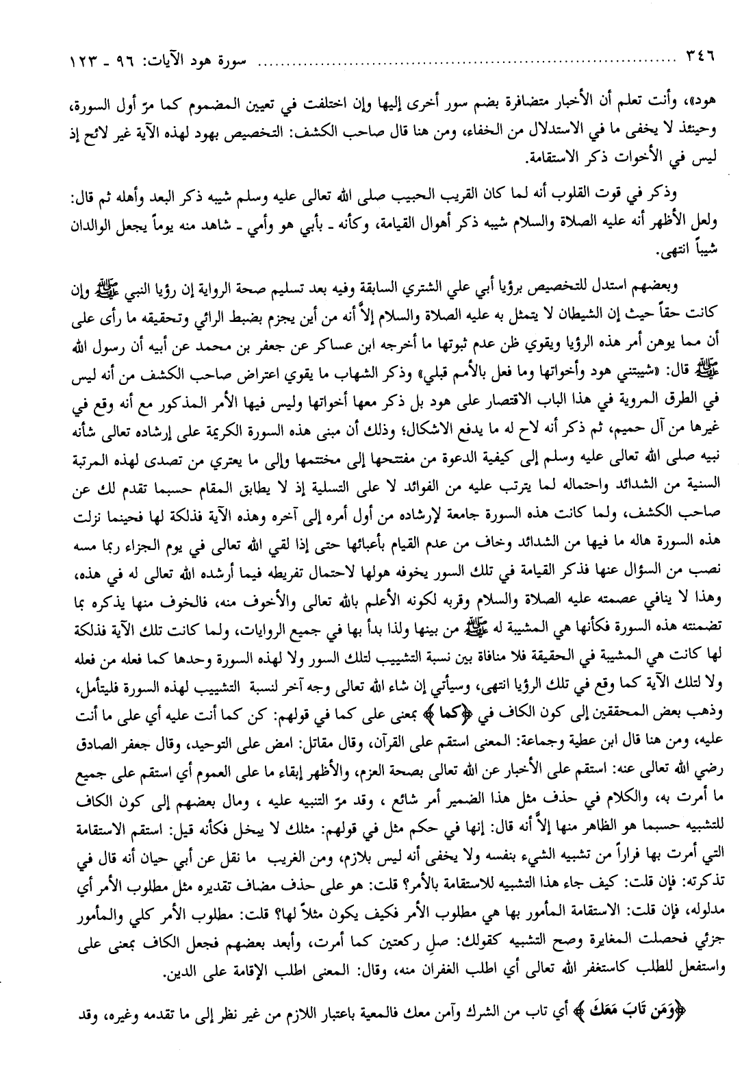وأنت تعلم أن الأخبار متضافرة بضم سور أخرى إليها وإن اختلفت في تعيين المضموم كما مرّ أول السورة، وحينئذ لا يخفى ما في الاستدلال من الخفاء، ومن هنا قال صاحب الكشف: التخصيص بهود لهذه الآية غير لائح إذ ليس في الأخوات ذكر الاستقامة.