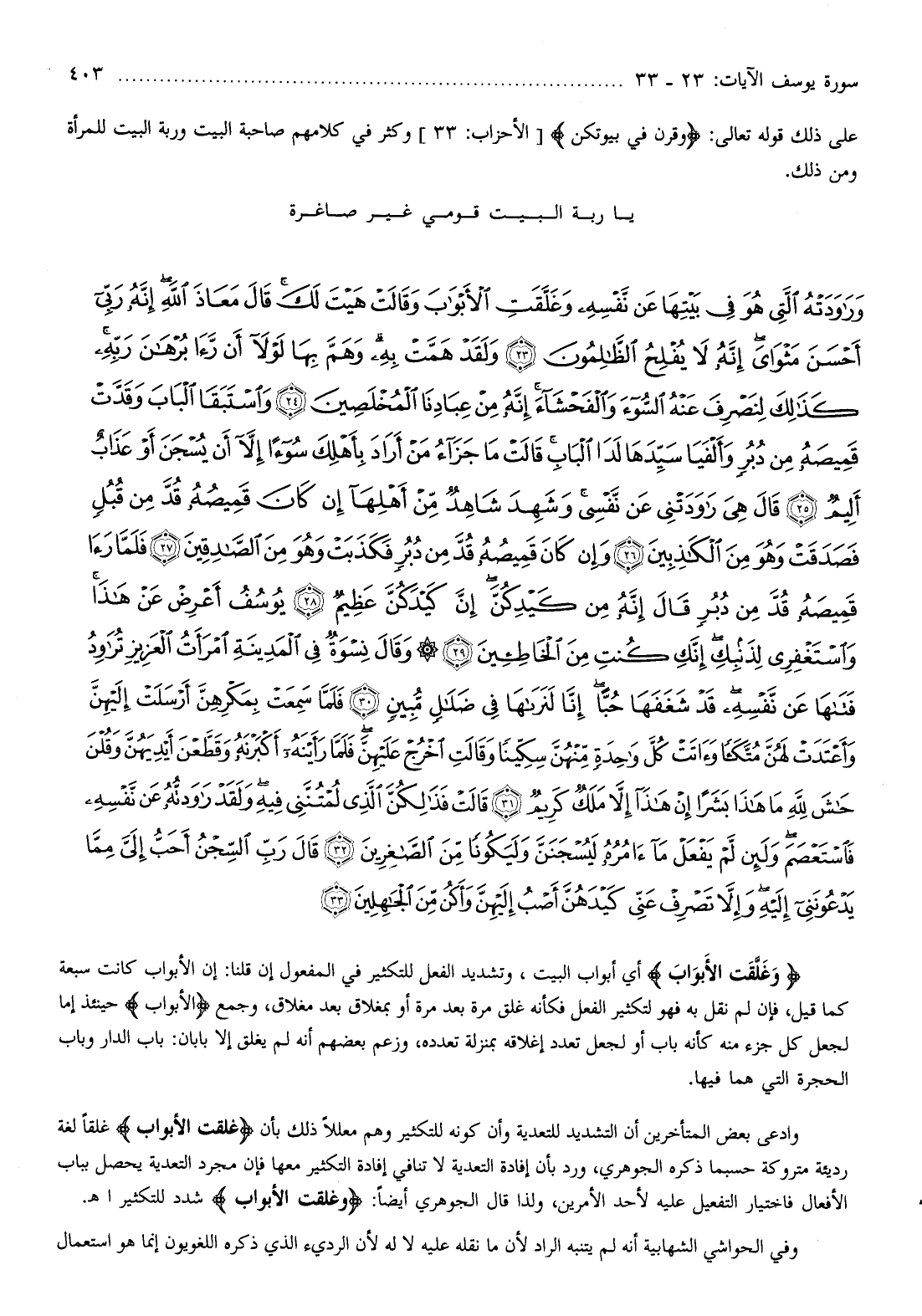على ذلك قوله تعالى: وَقَرْنَ فِي بُيُوتِكُنَّ [الأحزاب: 33] وكثر في كلامهم صاحبة البيت وربة البيت للمرأة ومن ذلك.