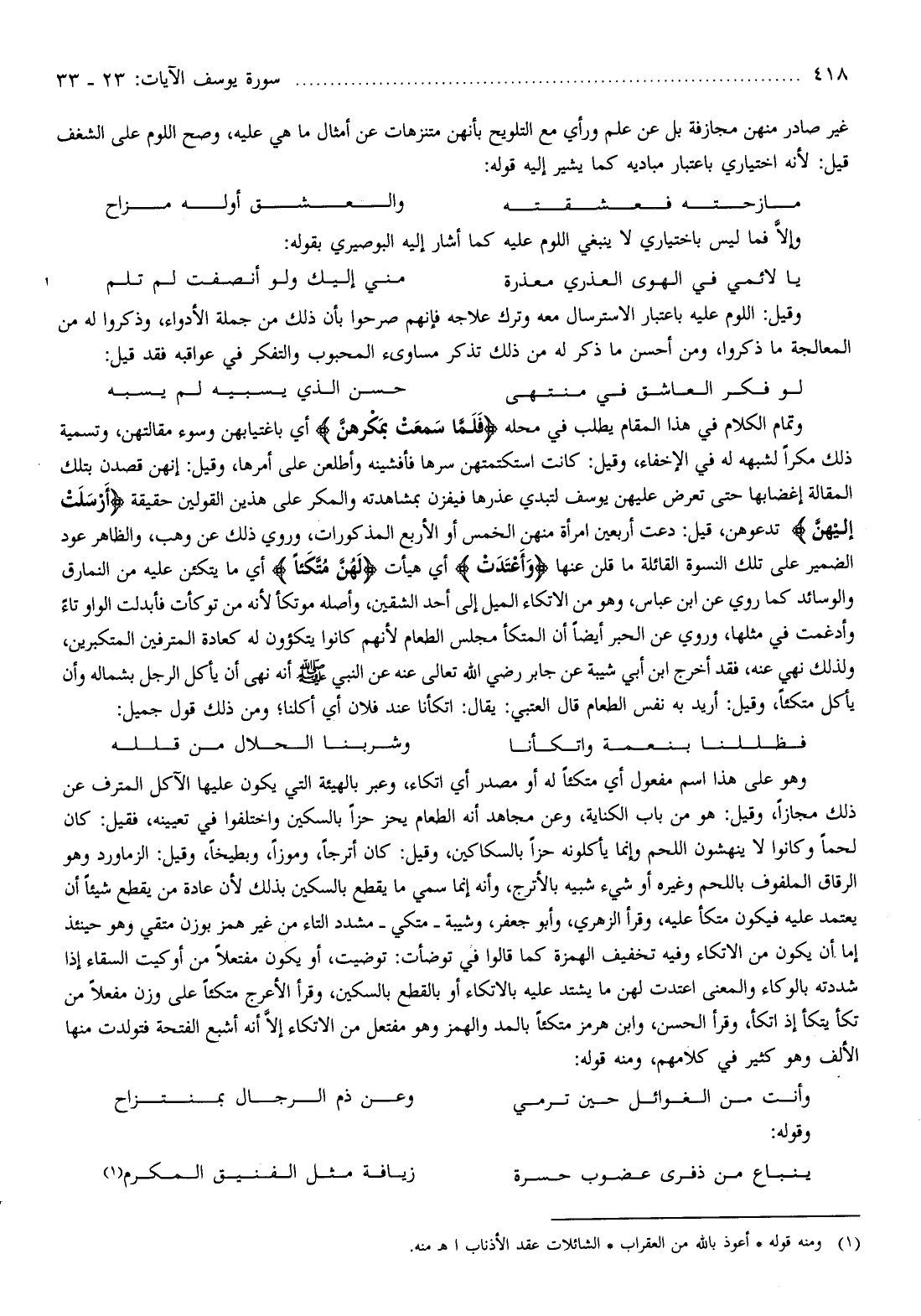 وقيل: أريد به نفس الطعام قال العتبي: يقال: اتكأنا عند فلان أي أكلنا ومن ذلك قول جميل: