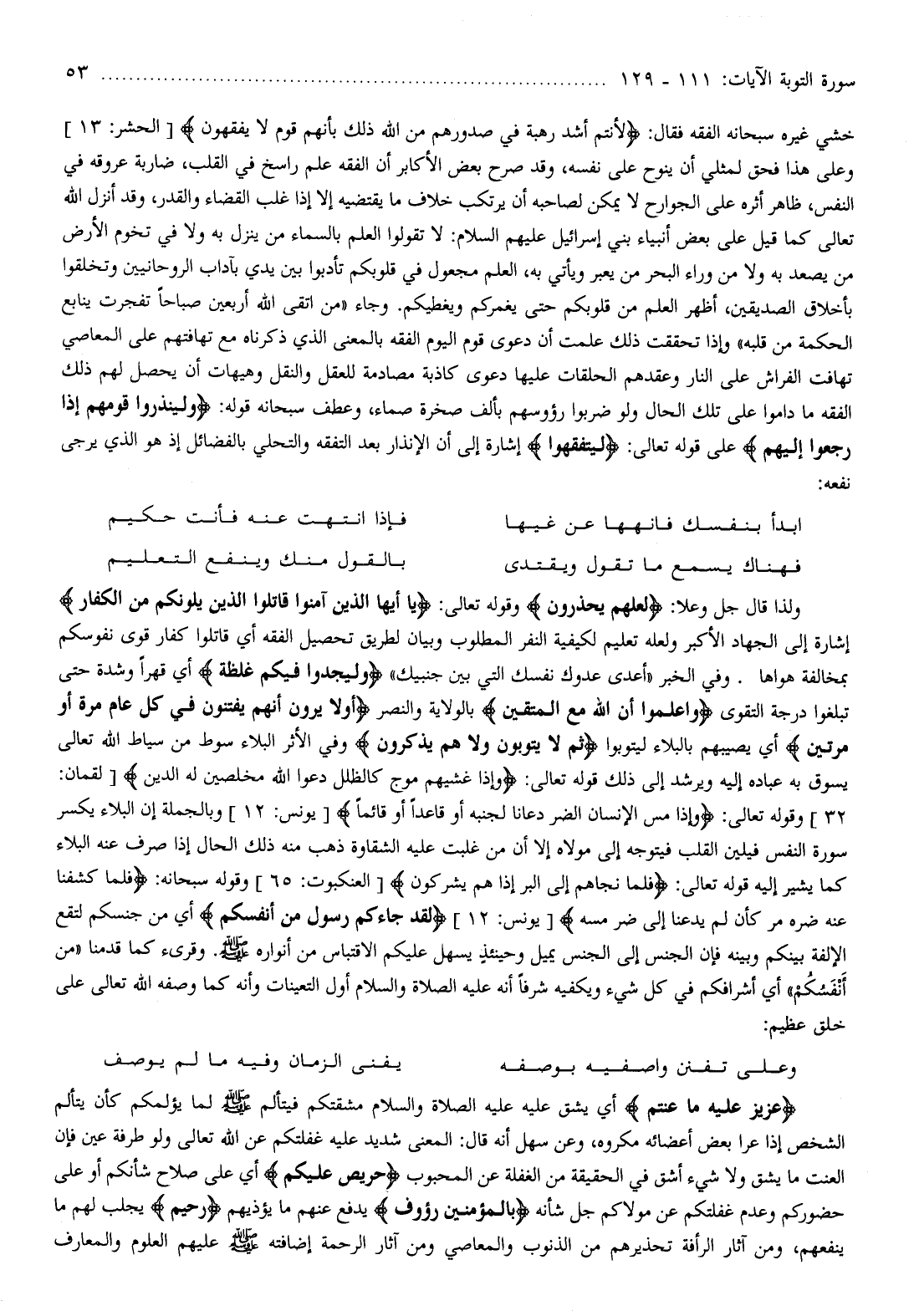 ولذا قال جل وعلا: لَعَلَّهُمْ يَحْذَرُونَ وقوله تعالى: يا أَيُّهَا الَّذِينَ آمَنُوا قاتِلُوا الَّذِينَ يَلُونَكُمْ مِنَ الْكُفَّارِ إشارة إلى الجهاد الأكبر ولعله تعليم لكيفية النفر المطلوب وبيان لطريق تحصيل الفقه أي قاتلوا كفار قوى نفوسكم بمخالفة هواها.