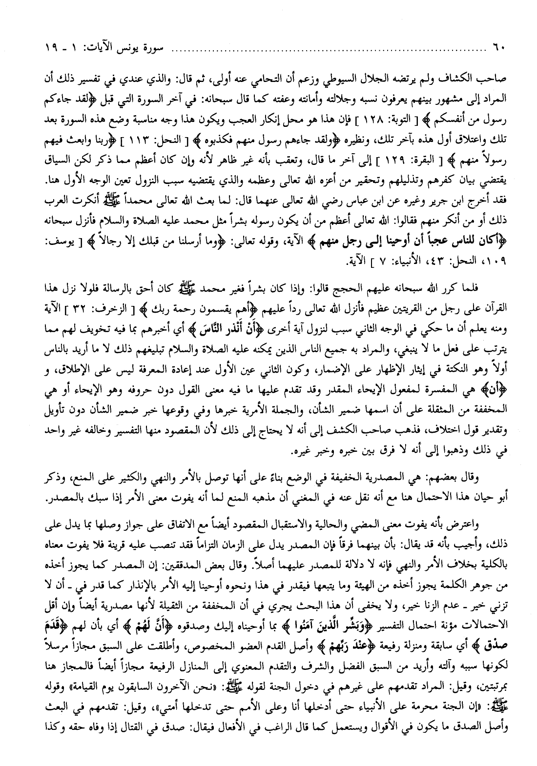 صاحب الكشاف ولم يرتضه الجلال السيوطي وزعم أن التحامي عنه أولى، ثم قال: والذي عندي في تفسير ذلك أن المراد إلى مشهور بينهم يعرفون نسبه وجلالته وأمانته وعفته كما قال سبحانه: في آخر السورة التي قبل لَقَدْ جاءَكُمْ رَسُولٌ مِنْ أَنْفُسِكُمْ [التوبة: 128] فإن هذا هو محل إنكار العجب ويكون هذا وجه مناسبة وضع هذه السورة بعد تلك واعتلاق أول هذه بآخر تلك، ونظيره وَلَقَدْ جاءَهُمْ رَسُولٌ مِنْهُمْ فَكَذَّبُوهُ [النحل: 113] رَبَّنا وَابْعَثْ فِيهِمْ رَسُولًا مِنْهُمْ [البقرة: 129] إلى آخر ما قال، وتعقب بأنه غير ظاهر لأنه وإن كان أعظم مما ذكر لكن السياق يقتضي بيان كفرهم وتذليلهم وتحقير من أعزه الله تعالى وعظمه والذي يقتضيه سبب النزول تعين الوجه الأول هنا.