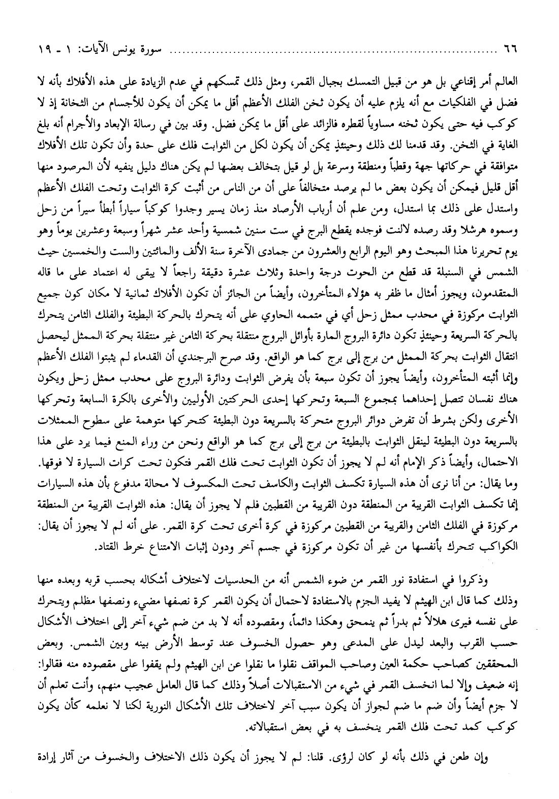 وما يقال: من أنا نرى أن هذه السيارة تكسف الثوابت والكاسف تحت المكسوف لا محالة مدفوع بأن هذه السيارات إنما تكسف الثوابت القريبة من المنطقة دون القريبة من القطبين فلم لا يجوز أن يقال: هذه الثوابت القريبة من المنطقة مركوزة في الفلك الثامن والقريبة من القطبين مركوزة في كرة أخرى تحت كرة القمر. على أنه لم لا يجوز أن يقال: