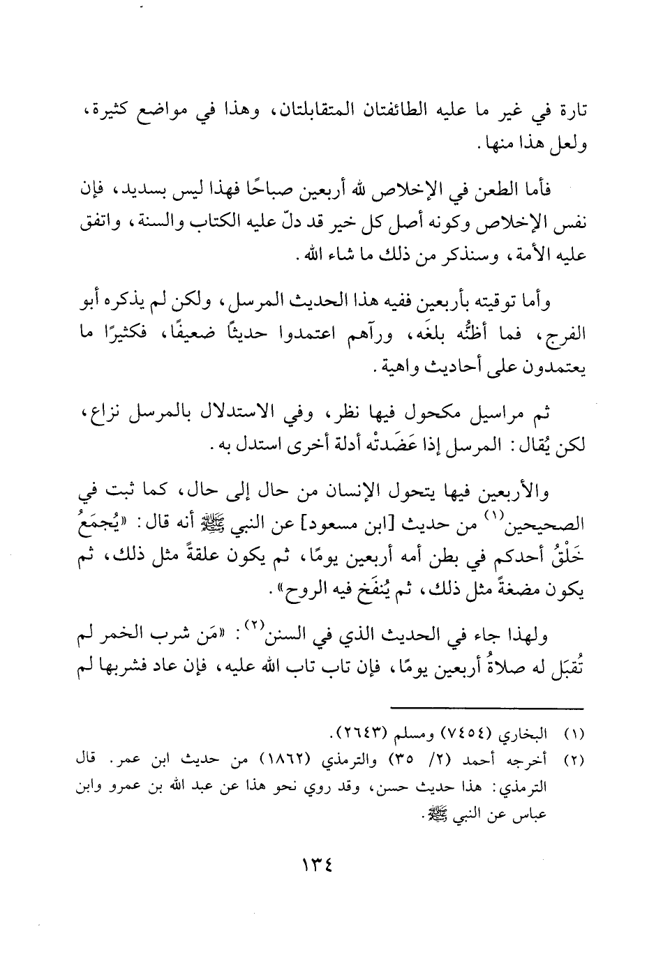وأما توقيته بأربعين ففيه هذا الحديث المرسل، ولكن لم يذكره أبو الفرج، فما أظنُّه بلغَه، ورآهم اعتمدوا حديثًا ضعيفًا، فكثيرًا ما يعتمدون على أحاديث واهية.