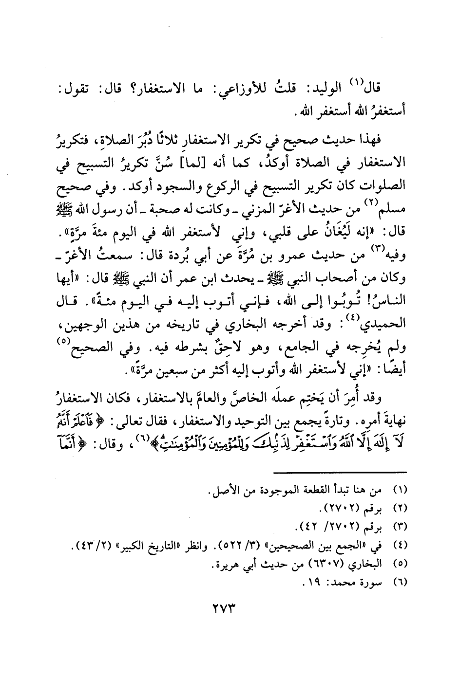 قال (1) الوليد: قلتُ للأوزاعي: ما الاستغفار؟ قال: تقول: أستغفرُ الله أستغفر الله.