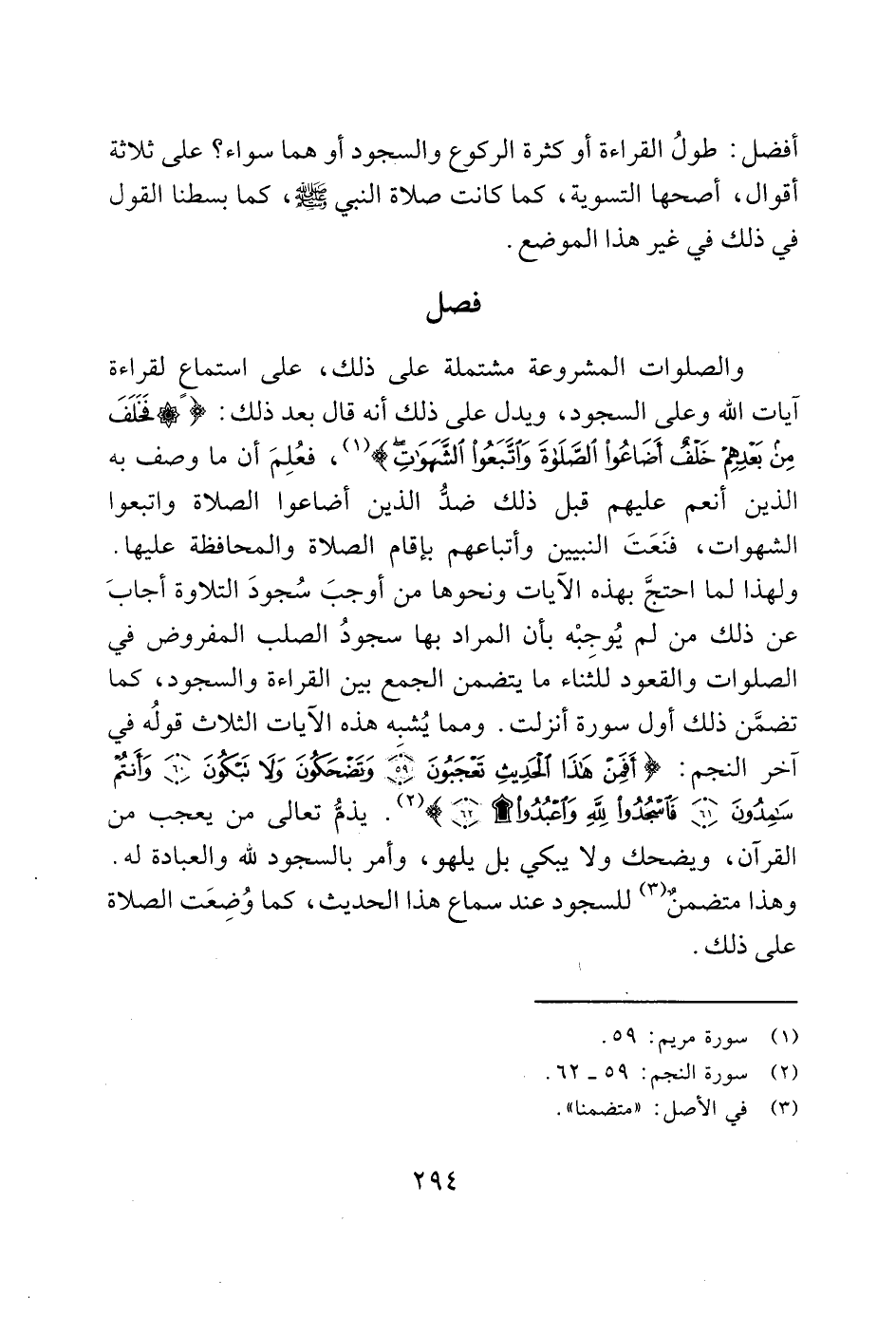 أفضل: طولُ القراءة أو كثرة الركوع والسجود أو هما سواء؟ على ثلاثة أقوال، أصحها التسوية، كما كانت صلاة النبي - صَلَّى اللَّهُ عَلَيْهِ وَسَلَّمَ -، كما بسطنا القول في ذلك في غير هذا الموضع.