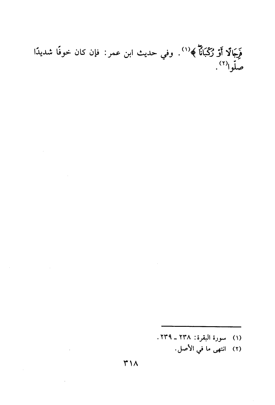 فَرِجَالًا أَوْ رُكْبَانًا) (1). وفي حديث ابن عمر: فإن كان خوفا شديدا صلّوا (2).