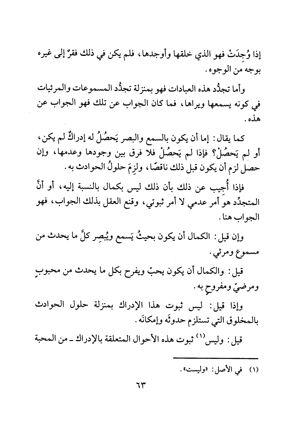 قيل: وليس (1) ثبوت هذه الأحوال المتعلقة بالإدراك- من المحبة