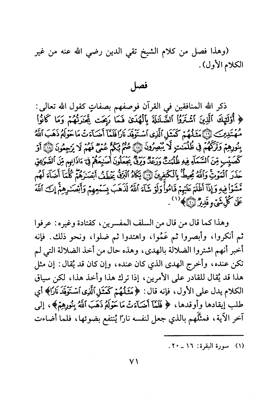 (وهذا فصل من كلام الشيخ تقي الدين رضي الله عنه من غير الكلام الأول).