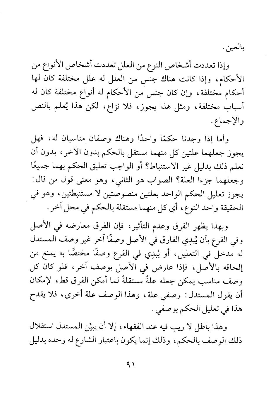 وإذا تعددت أشخاص النوع من العلل تعددت أشخاص الأنواع من الأحكام، وإذا كانت هناك جنس من العلل له علل مختلفة كان لها أحكام مختلفة، وإن كان جنس من الأحكام له أنواع مختلفة كان له أسباب مختلفة، ومثل هذا يجوز، فلا نزاع، لكن هذا يُعلم بالنص والإجماع.