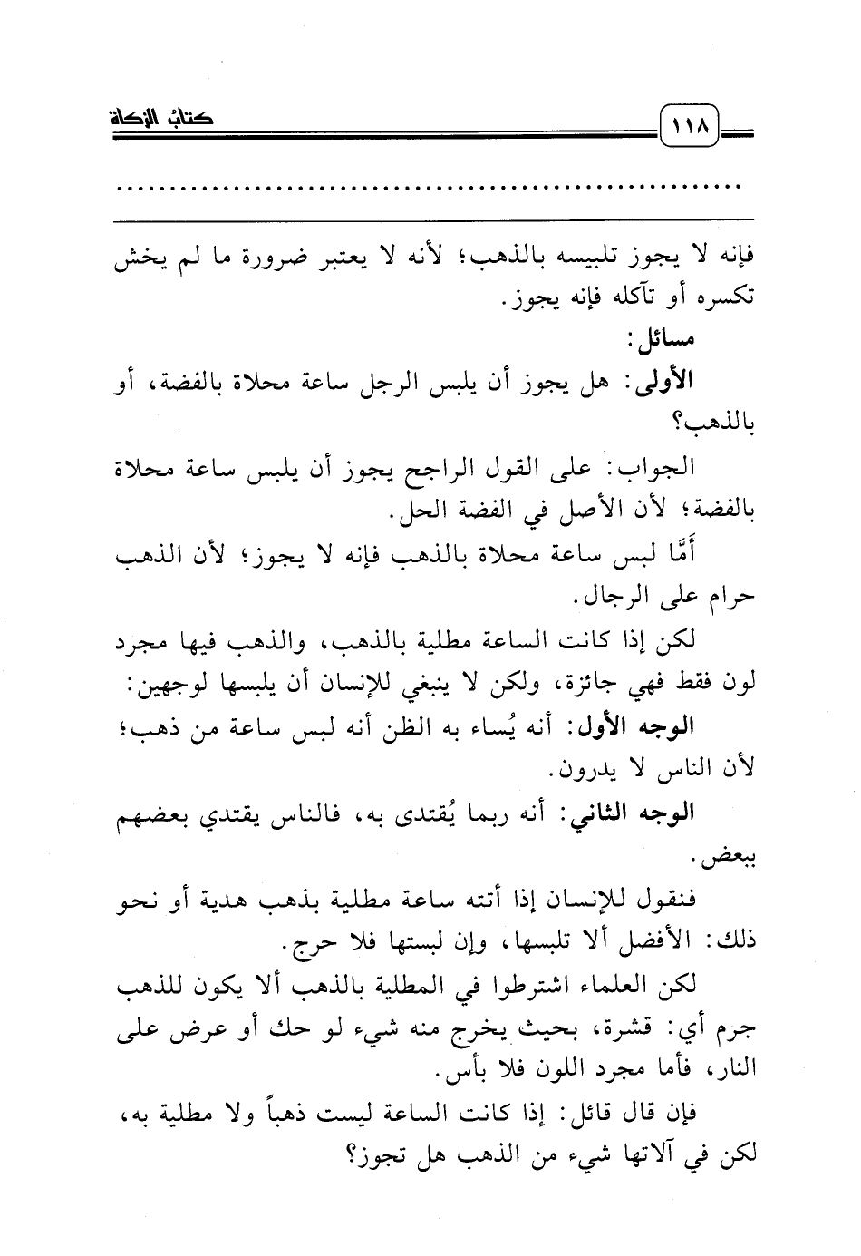 فإن قال قائل: إذا كانت الساعة ليست ذهباً ولا مطلية به، لكن في آلاتها شيء من الذهب هل تجوز؟