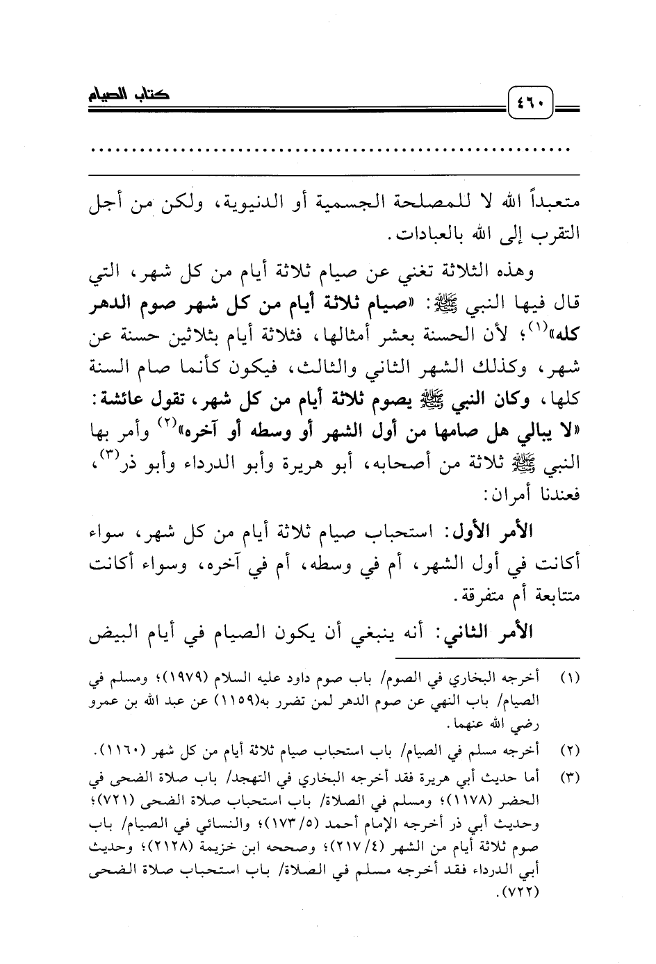 (¬2) أخرجه مسلم في الصيام/ باب استحباب صيام ثلاثة أيام من كل شهر (1160).