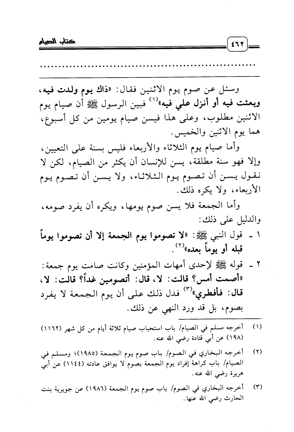 (¬3) أخرجه البخاري في الصوم/ باب صوم يوم الجمعة (1986) عن جويرية بنت الحارث رضي الله عنها.