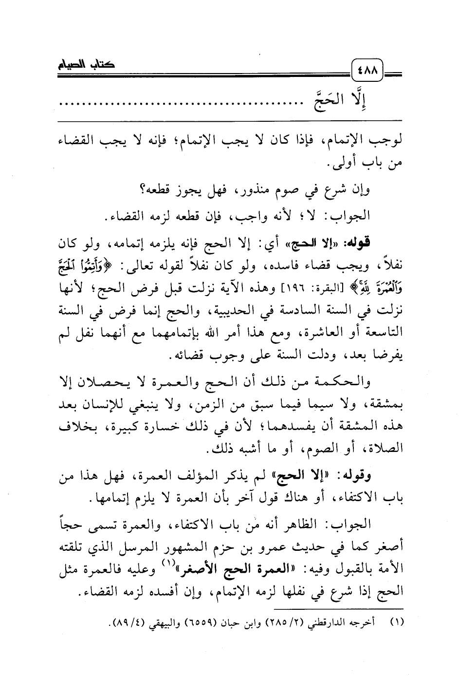 وقوله: «إلا الحج» لم يذكر المؤلف العمرة، فهل هذا من باب الاكتفاء، أو هناك قول آخر بأن العمرة لا يلزم إتمامها.