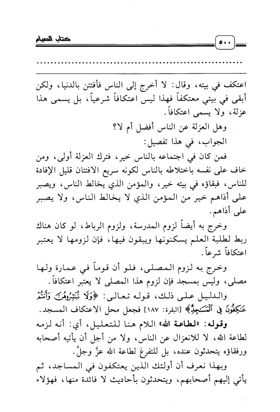 وبهذا نعرف أن أولئك الذين يعتكفون في المساجد، ثم يأتي إليهم أصحابهم، ويتحدثون بأحاديث لا فائدة منها، فهؤلاء