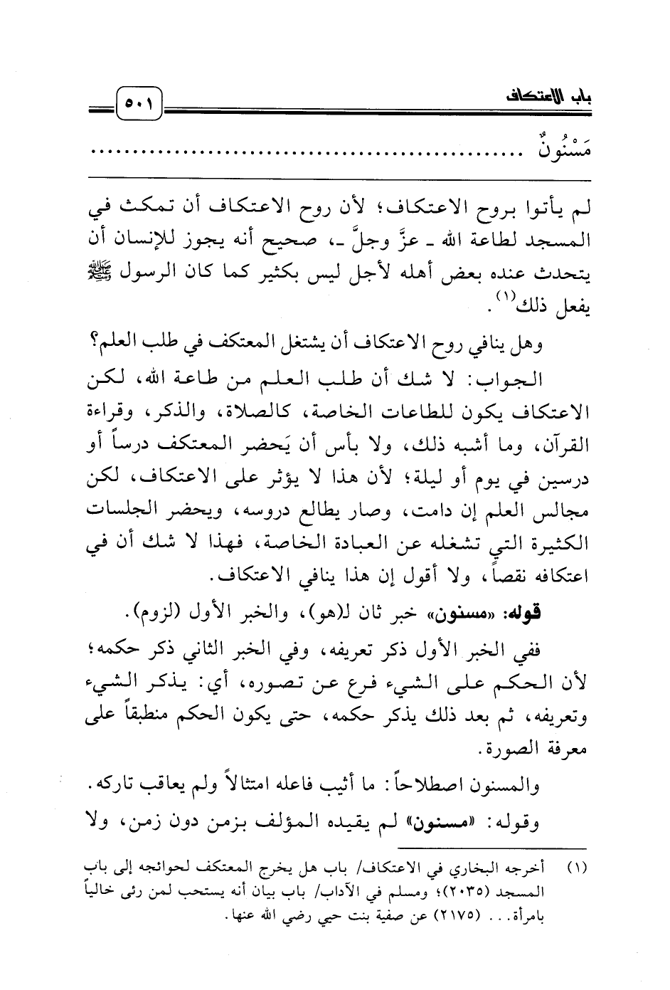 قوله: «مسنون» خبر ثان لـ (هو)، والخبر الأول (لزوم).