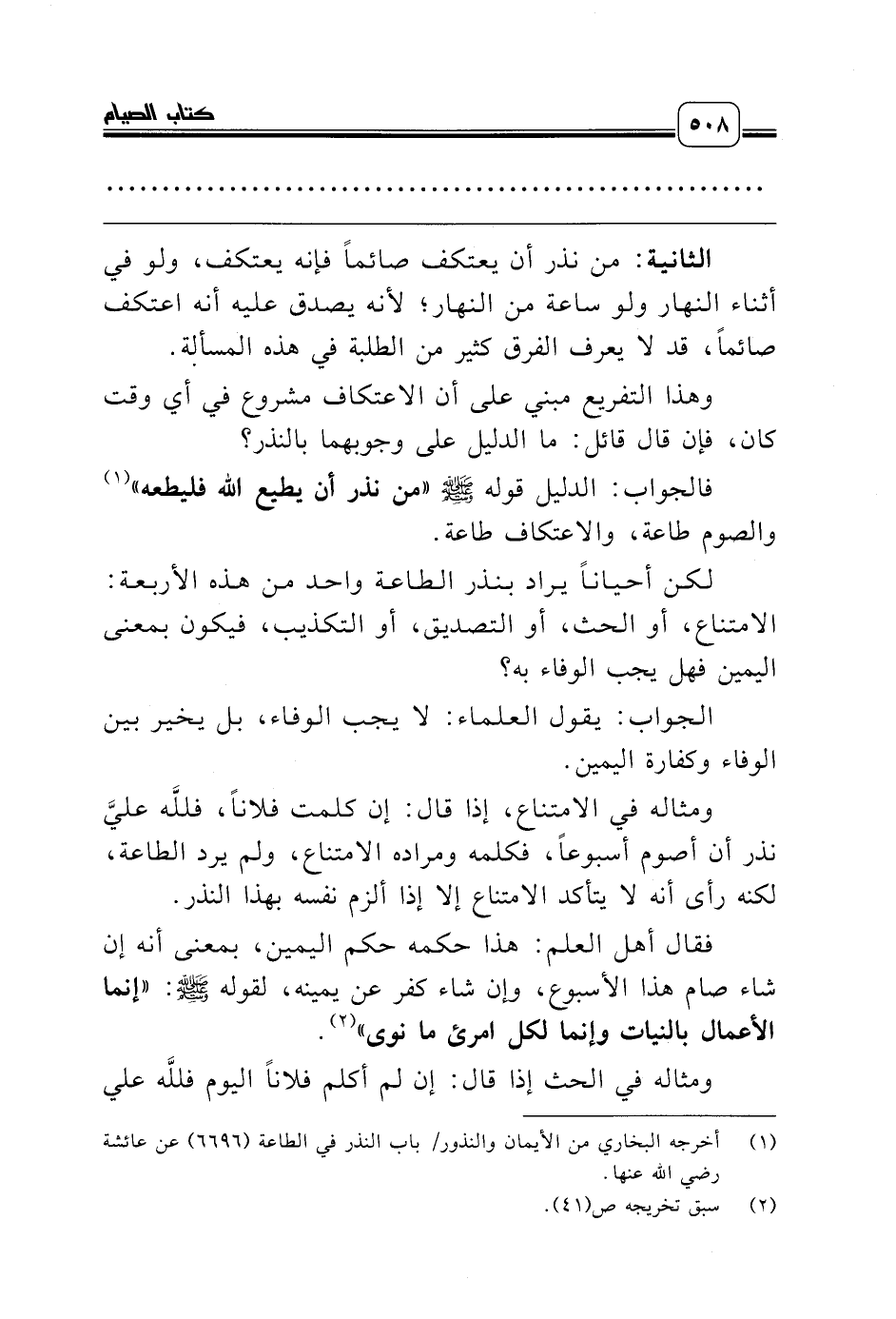 (¬1) أخرجه البخاري من الأيمان والنذور/ باب النذر في الطاعة (6696) عن عائشة رضي الله عنها.