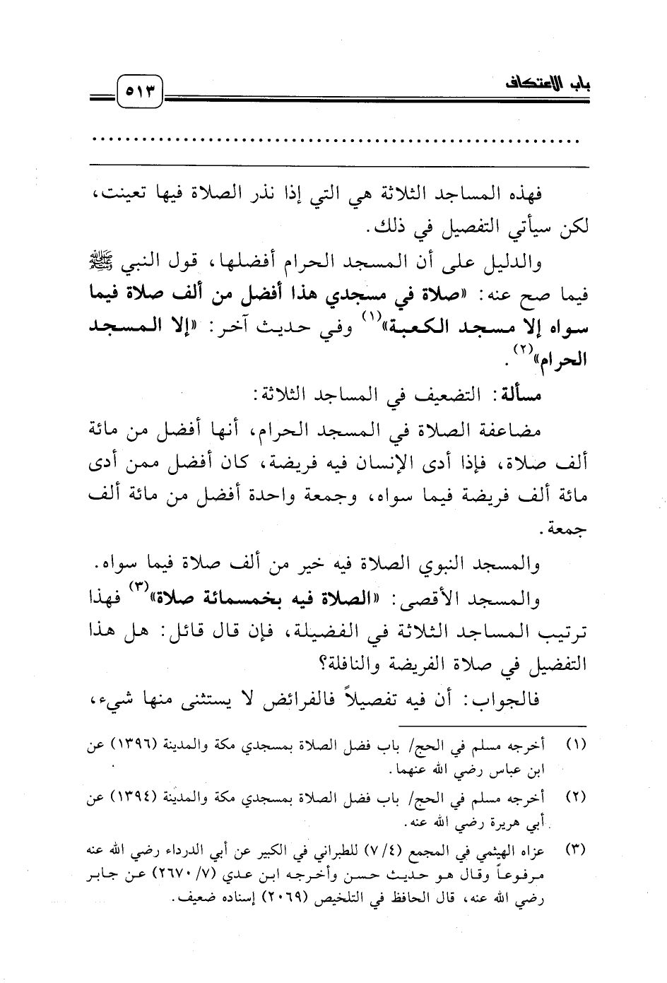 مسألة: التضعيف في المساجد الثلاثة: