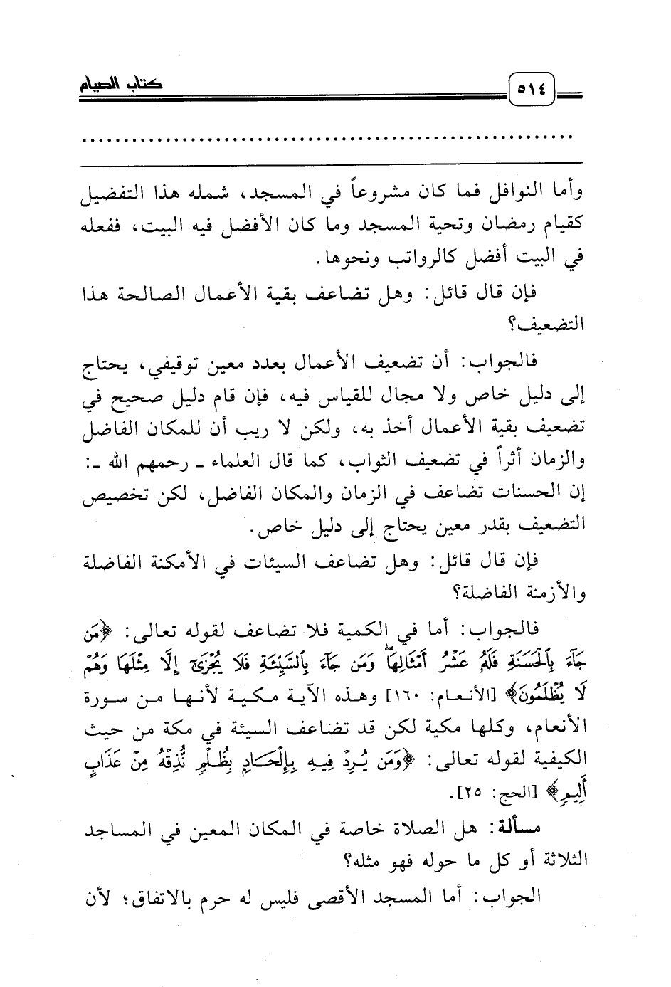 فإن قال قائل: وهل تضاعف السيئات في الأمكنة الفاضلة والأزمنة الفاضلة؟