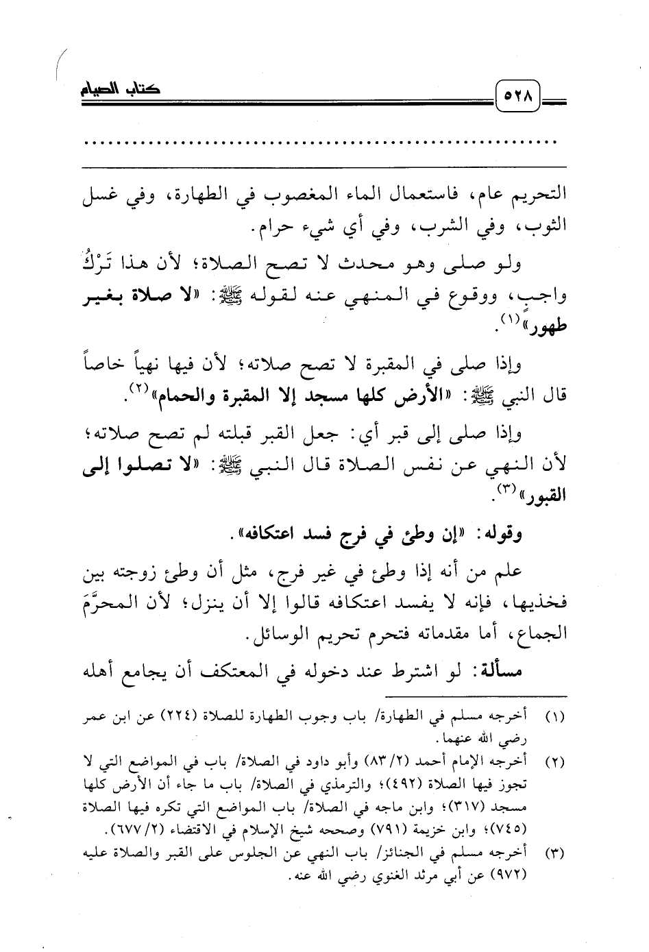 (¬3) أخرجه مسلم في الجنائز/ باب النهي عن الجلوس على القبر والصلاة عليه (972) عن أبي مرثد الغنوي رضي الله عنه.