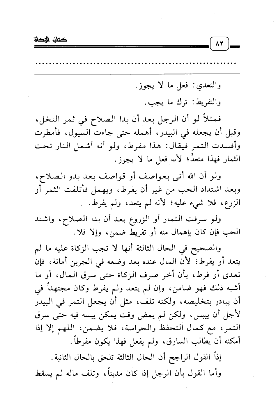 فمثلاً لو أن الرجل بعد أن بدا الصلاح في ثمر النخل، وقبل أن يجعله في البيدر، أهمله حتى جاءت السيول، فأمطرت وأفسدت التمر فيقال: هذا مفرط، ولو أنه أشعل النار تحت الثمار فهذا متعدٍّ؛ لأنه فعل ما لا يجوز.