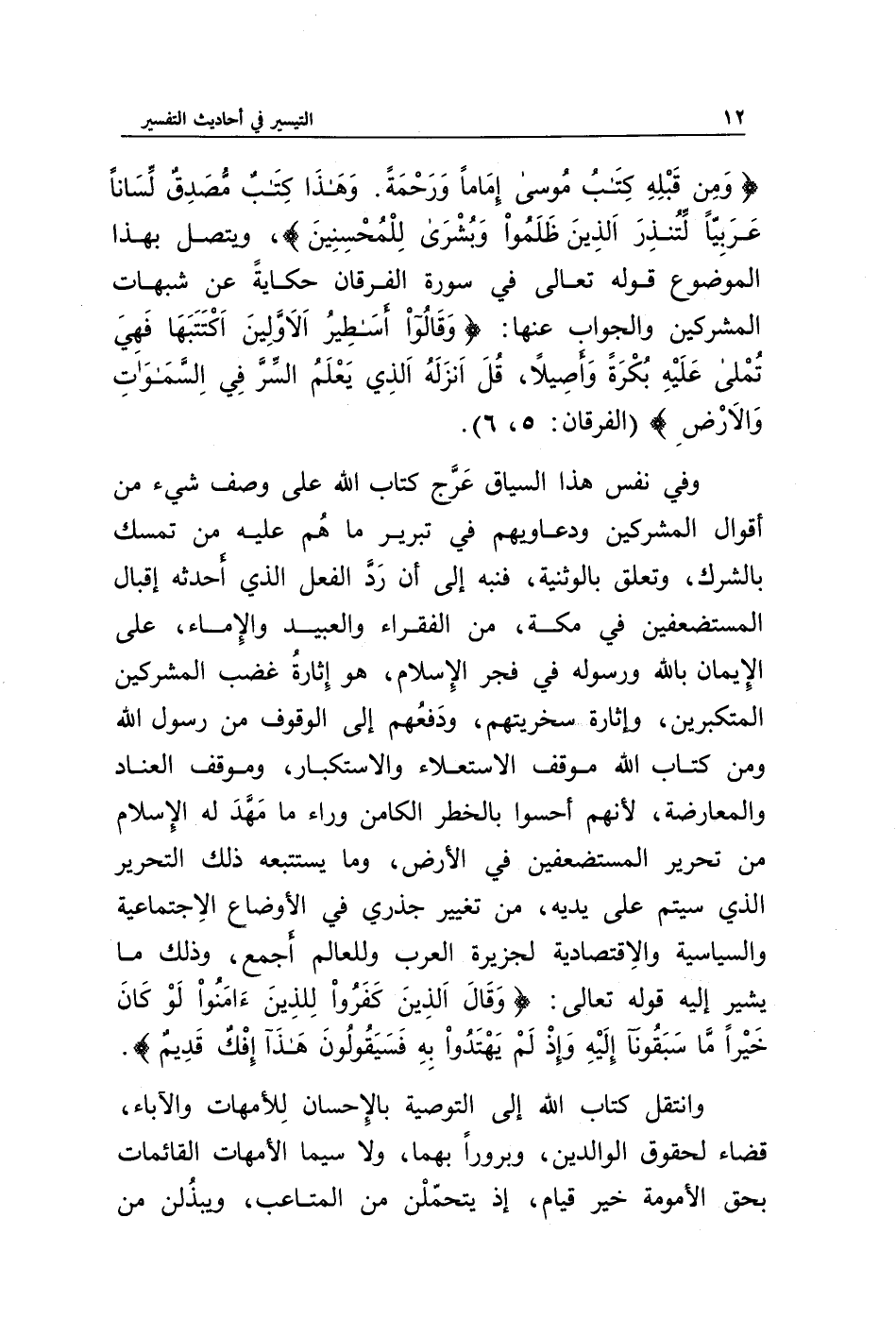 وفي نفس هذا السياق عرّج كتاب الله على وصف شيء من أقوال المشركين ودعاويهم في تبرير ما هم عليه من تمسك بالشرك، وتعلق بالوثنية، فنبه إلى أن رد الفعل الذي أحدثه إقبال المستضعفين في مكة، من الفقراء والعبيد والإماء، على الإيمان بالله ورسوله في فجر الإسلام، هو إثارة غضب المشركين المتكبرين، وإثارة سخريتهم، ودفعهم إلى الوقوف من رسول الله ومن كتاب الله موقف الاستعلاء والاستكبار، وموقف العناد والمعارضة، لأنهم أحسوا بالخطر الكامن وراء ما مهد له الإسلام من تحرير المستضعفين في الأرض، وما يستتبعه ذلك التحرير الذي سيتم على يديه، من تغيير جذري في الأوضاع الاجتماعية والسياسية والاقتصادية لجزيرة العرب وللعالم أجمع، وذلك ما يشير إليه قوله تعالى: {وَقَالَ الَّذِينَ كَفَرُوا لِلَّذِينَ آمَنُوا لَوْ كَانَ خَيْرًا مَا سَبَقُونَا إِلَيْهِ وَإِذْ لَمْ يَهْتَدُوا بِهِ فَسَيَقُولُونَ هَذَا إِفْكٌ قَدِيمٌ}.