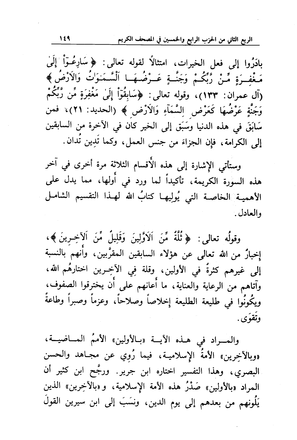 وقوله تعالى: {ثُلَّةٌ مِنَ الْأَوَّلِينَ * وَقَلِيلٌ مِنَ الْآخِرِينَ}، إخبار من الله تعالى عن هؤلاء السابقين المقربين، وأنهم بالنسبة إلى غيرهم كثرة في الأولين، وقلة في الآخرين اختارهم الله، وآتاهم من الرعاية والعناية، ما أعانهم على أن يخترقوا الصفوف، ويكونوا في طليعة الطليعة إخلاصا وصلاحا، وعزما وصبرا وطاعة وتقوى.