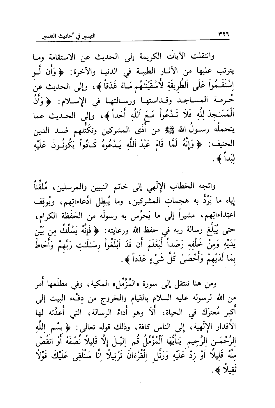 ومن هنا ننتقل إلى سورة " المزمل " المكية، وفي مطلعها أمر من الله ورسوله عليه السلام بالقيام والخروج من دفء البيت إلى أكبر معترك في الحياة، ألا وهو أداء الرسالة، التي أعدته لها الأقدار الإلهية، إلى الناس كافة، وذلك قوله تعالى: {بسم الله الرحمن الرحيم يَا أَيُّهَا الْمُزَّمِّلُ * قُمِ اللَّيْلَ إِلَّا قَلِيلًا * نِصْفَهُ أَوِ انْقُصْ مِنْهُ قَلِيلًا * أَوْ زِدْ عَلَيْهِ وَرَتِّلِ الْقُرْآنَ تَرْتِيلًا * إِنَّا سَنُلْقِي عَلَيْكَ قَوْلًا ثَقِيلًا}.