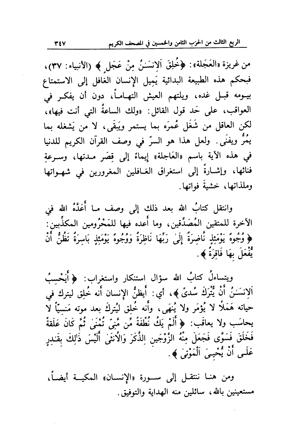 ومن هنا ننتقل إلى سورة " الإنسان " المكية أيضا، مستعينين بالله، سائلين منه الهداية والتوفيق.