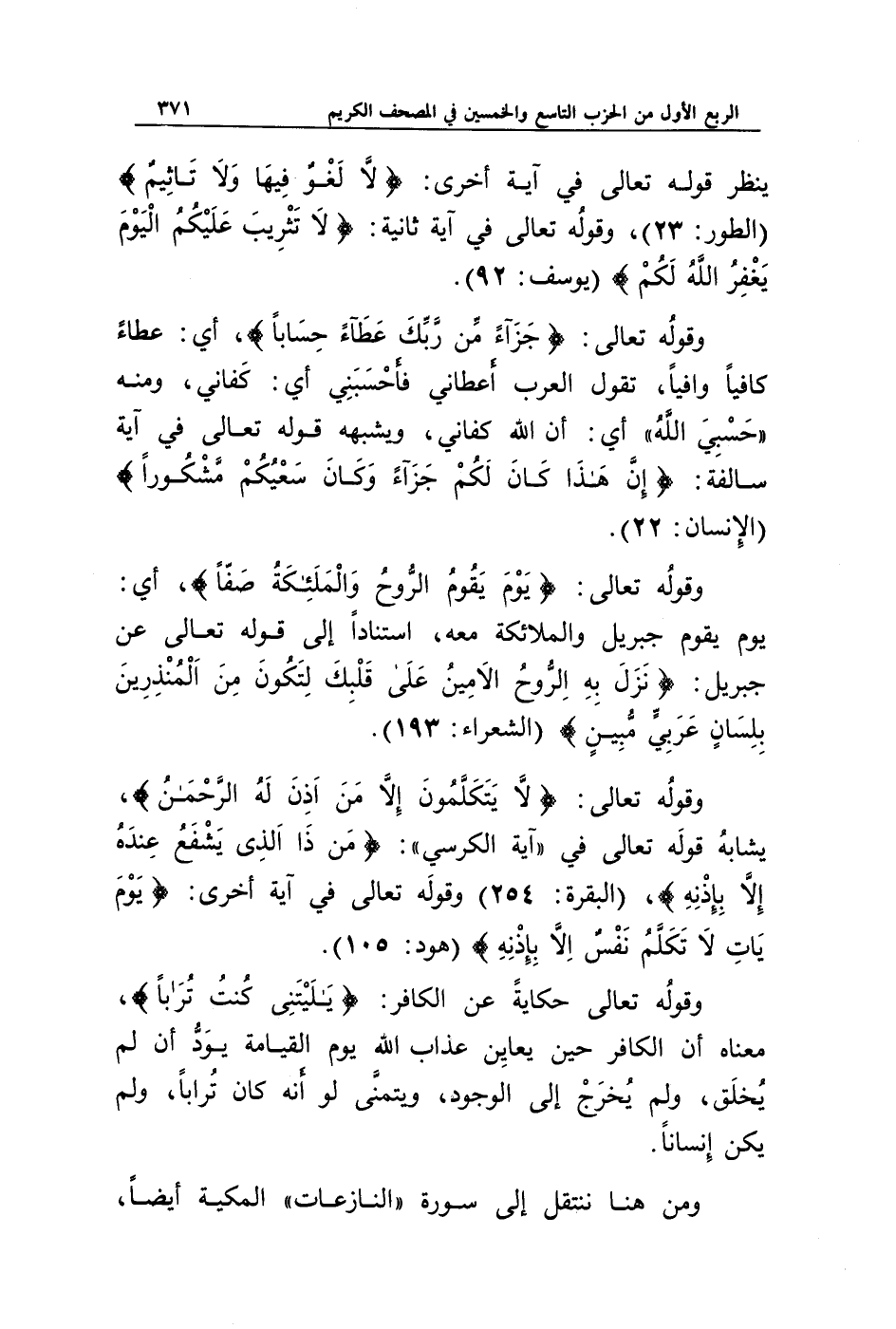 وقوله تعالى: {لَا يَتَكَلَّمُونَ إِلَّا مَنْ أَذِنَ لَهُ الرَّحْمَنُ}، يشابه قوله تعالى في " آية الكرسي ": {مَنْ ذَا الَّذِي يَشْفَعُ عِنْدَهُ إِلَّا بِإِذْنِهِ} (البقرة: 254) وقوله تعالى في آية أخرى: {يَوْمَ يَأْتِ لَا تَكَلَّمُ نَفْسٌ إِلَّا بِإِذْنِهِ} (هود: 105).
