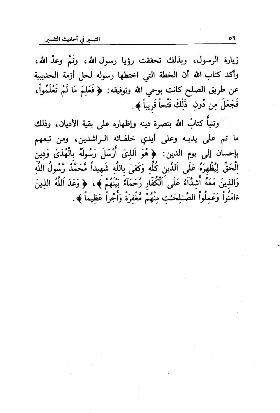 زيارة الرسول، وبذلك تحققت رؤيا رسول الله، وتم وعد الله وأكد كتاب الله أن الخطة التي اختطها رسوله لحل أزمة الحديبية عن طريق الصلح كانت بوحي الله وتوفيقه: {فَعَلِمَ مَا لَمْ تَعْلَمُوا فَجَعَلَ مِنْ دُونِ ذَلِكَ فَتْحًا قَرِيبًا}.
