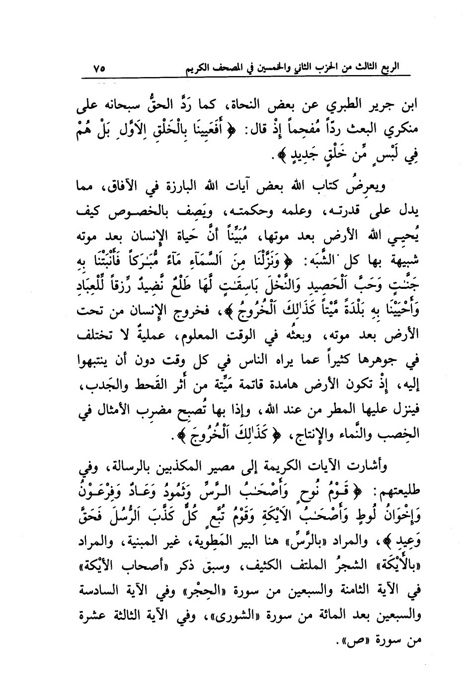 ابن جرير الطبري عن بعض النحاة، كما رد الحق سبحانه على منكري البعث ردا مفحما إذ قال: {أَفَعَيِينَا بِالْخَلْقِ الْأَوَّلِ بَلْ هُمْ فِي لَبْسٍ مِنْ خَلْقٍ جَدِيدٍ}.