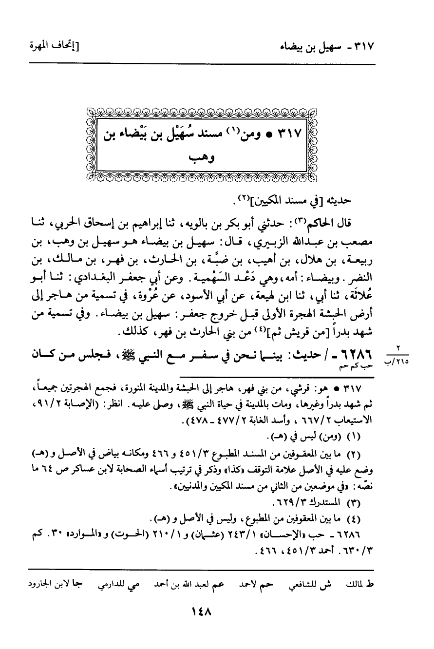 317 ـ وَمِنْ مُسْنَدِ سُهَيْلٍ ابْنِ بَيْضَاءَ، ابْنِ وَهْبٍ.