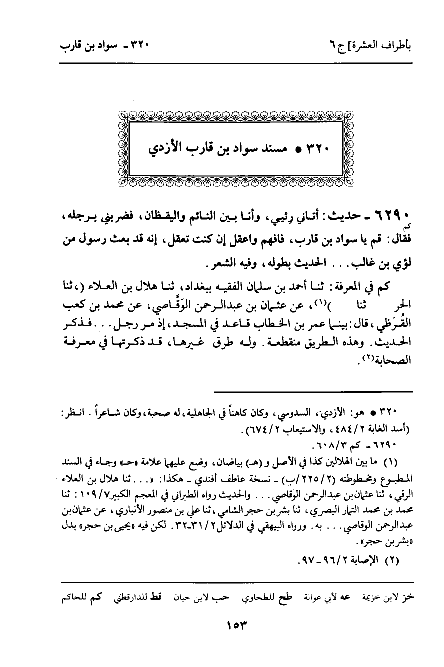320 ـ مُسْنَدُ سَوَّادُ بْنُ قَارِبٍ الأَزْدِيُّ.