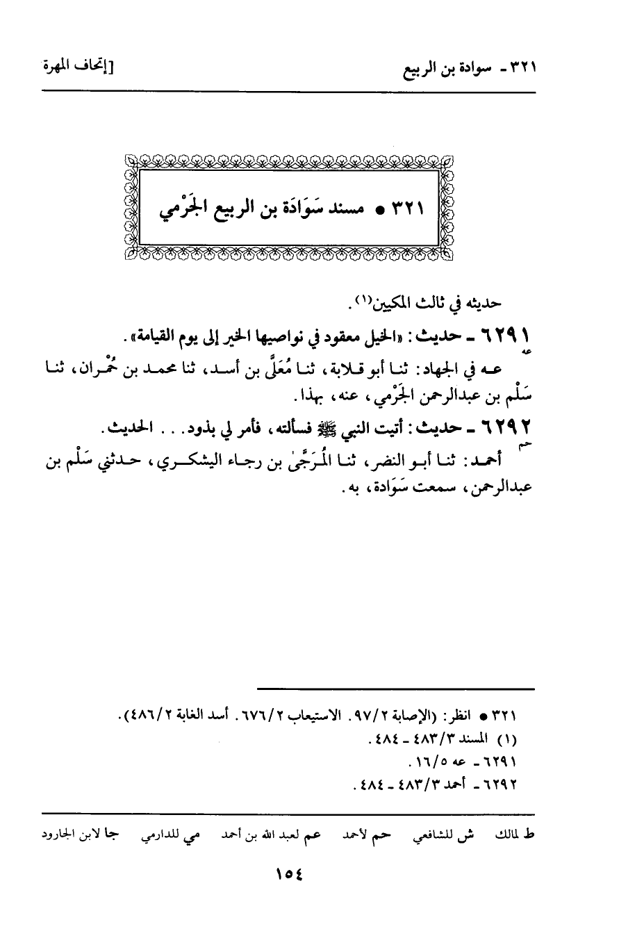 321 ـ مُسْنَدُ سَوَادَةَ بْنِ الرَّبِيعِ الْجَرْمِيُّ.
