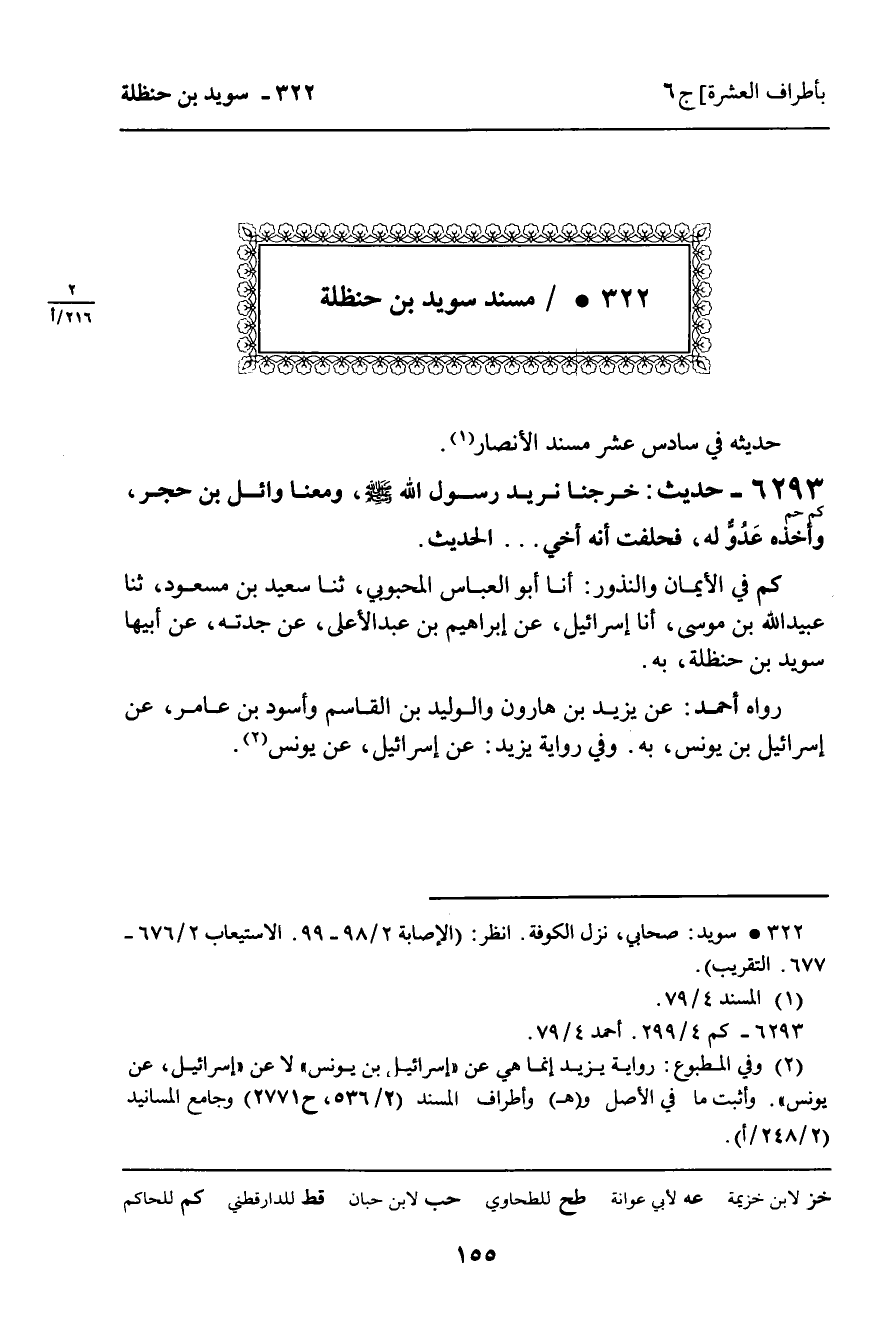 322 ـ مُسْنَدُ سُوَيْدُ بْنُ حَنْظَلَةَ.