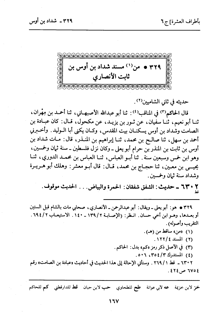 329 ـ مِنْ مُسْنَدِ شَدَّادِ بْنِ أَوْسِ بْنِ ثَابِتٍ الأَنْصَارِيِّ.