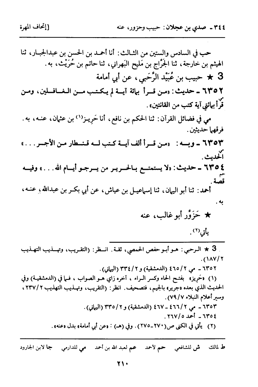 6352 - حَبِيبُ بْنُ عُبَيْدٍ الرَّحَبِيُّ، عَنْ أَبِي أُمَامَةَ.