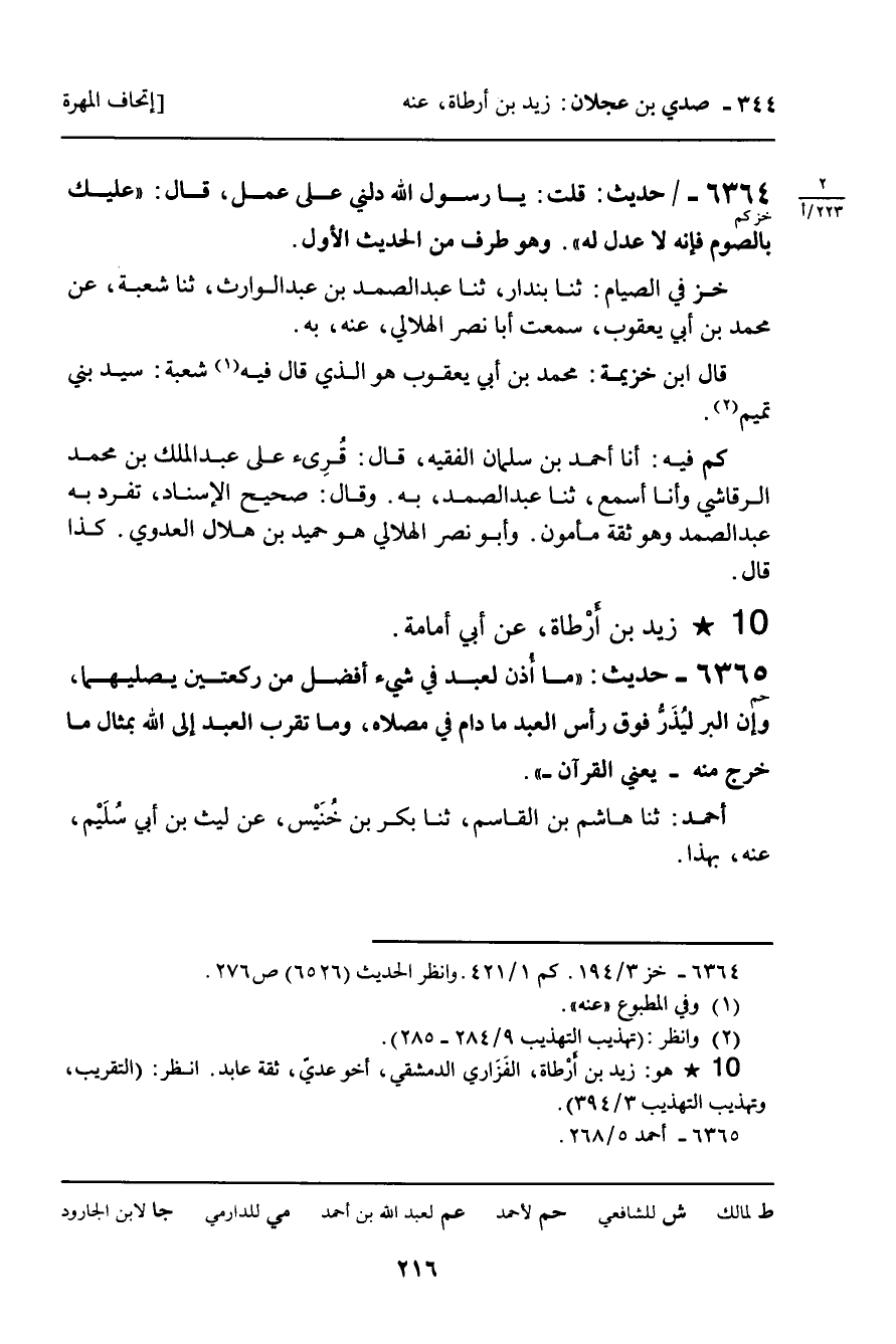 ـ زَيْدُ بْنُ أَرْطَاةَ، عَنْ أَبِي أُمَامَةَ.
