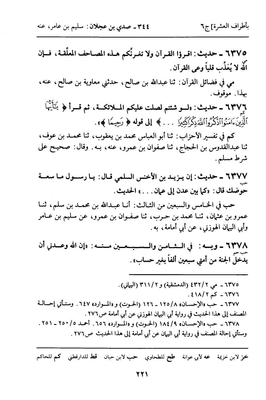 كتاب إتحاف المهرة لابن حجر (اسم الجزء: 6)