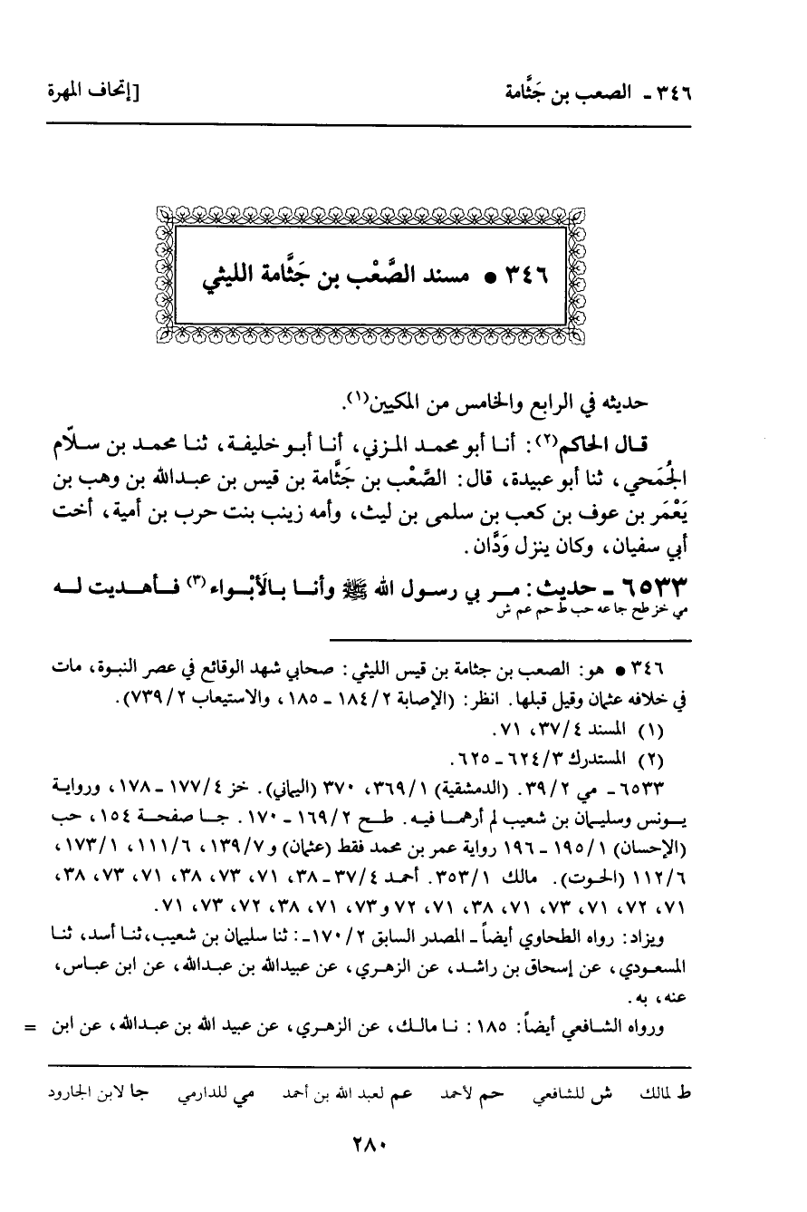 346 ـ مُسْنَدُ الصَّعْبِ بْنِ جَثَّامَةَ اللَّيْثِيِّ.