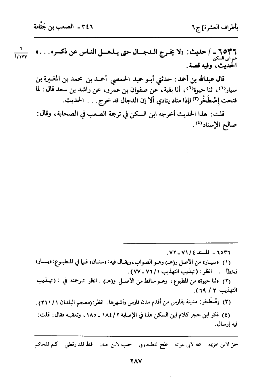كتاب إتحاف المهرة لابن حجر (اسم الجزء: 6)