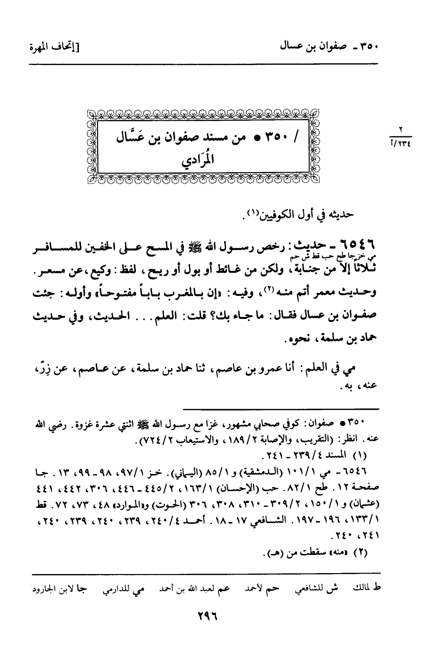 350 ـ مِنْ مُسْنَدِ صَفْوَانَ بْنِ عَسَّالٍ الْمُرَادِيِّ.