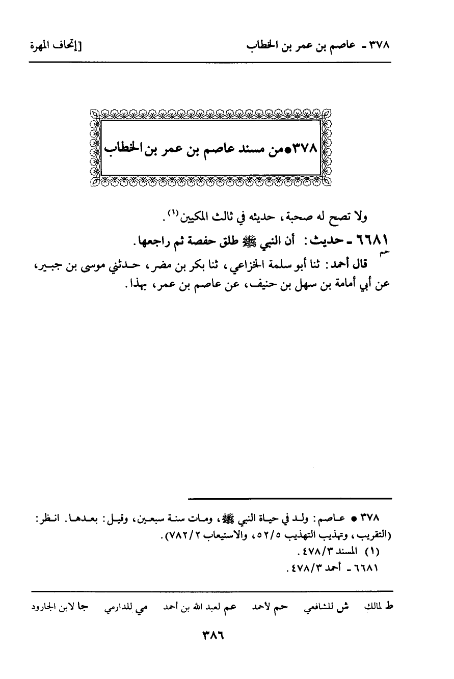 378 ـ مِنْ مُسْنَدِ عَاصِمِ بْنِ عُمَرَ بْنِ الْخَطَّابِ.