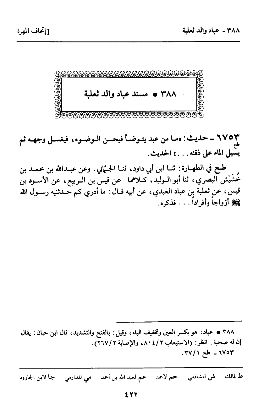 388 ـ مُسْنَدُ عَبَّادٍ وَالِدِ ثَعْلَبَةَ.