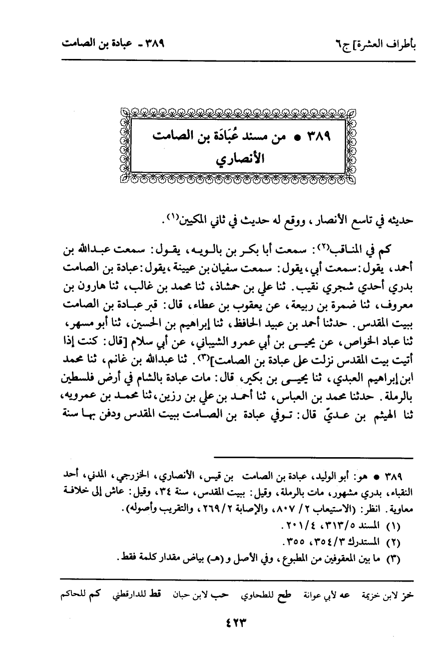389 ـ مِنْ مُسْنَدِ عُبَادَةَ بْنِ الصَّامِتِ الأَنْصَارِيِّ.
