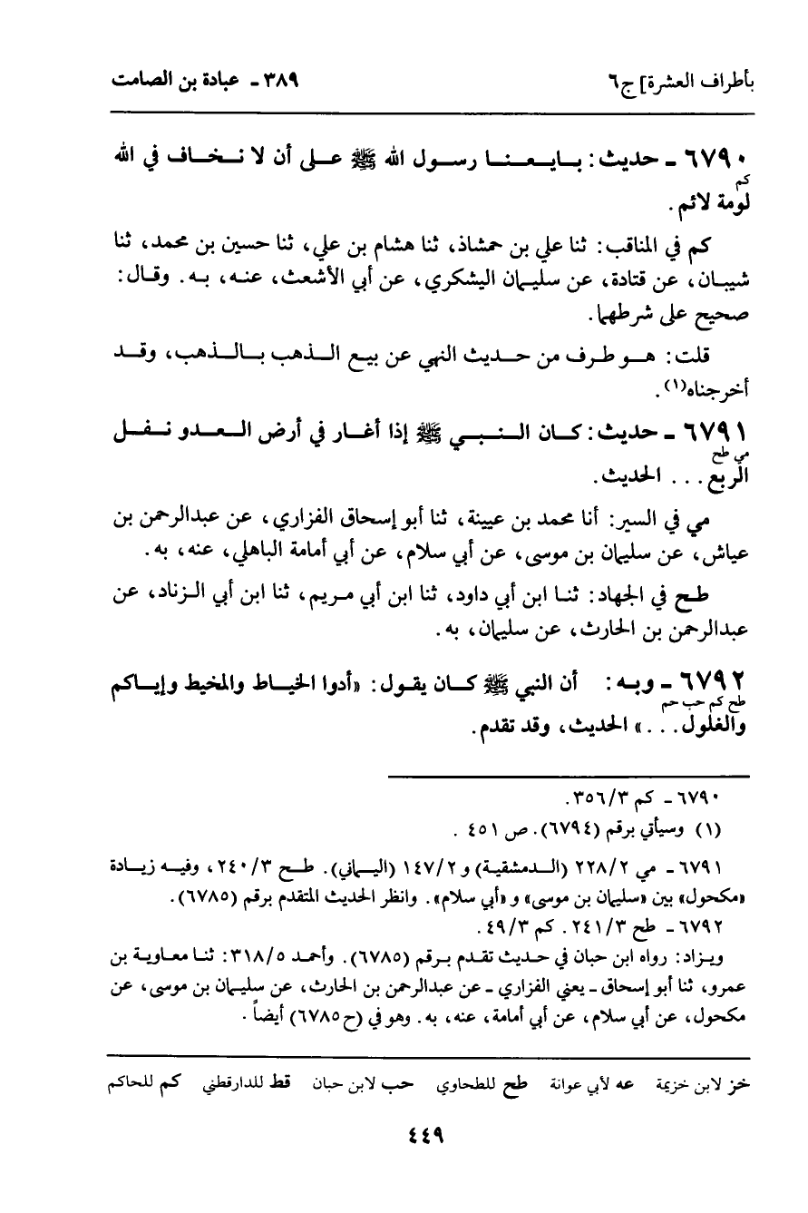 6792 - وَبِهِ (طح كم حب حم) : أَنَّ النَّبِيَّ، صَلَّى اللَّهُ عَلَيْهِ وَسَلَّمَ، كَانَ يَقُولُ: " أَدُّوا الْخِيَاطَ وَالْمِخْيَطَ، وَإِيَّاكُمْ وَالْغُلُولَ. . . " الْحَدِيثَ، وَقَدْ تَقَدَّمَ.