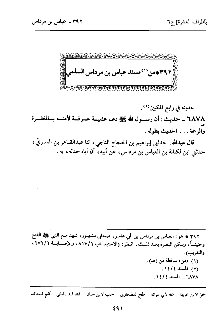 392 ـ مُسْنَدُ عَبَّاسِ بْنِ مِرْدَاسٍ السُّلَمِيِّ.